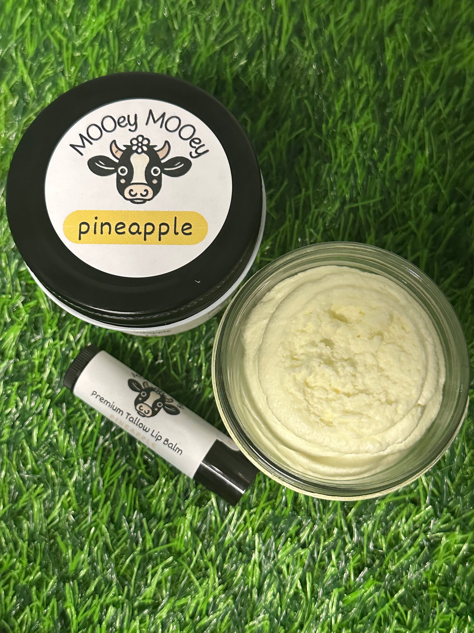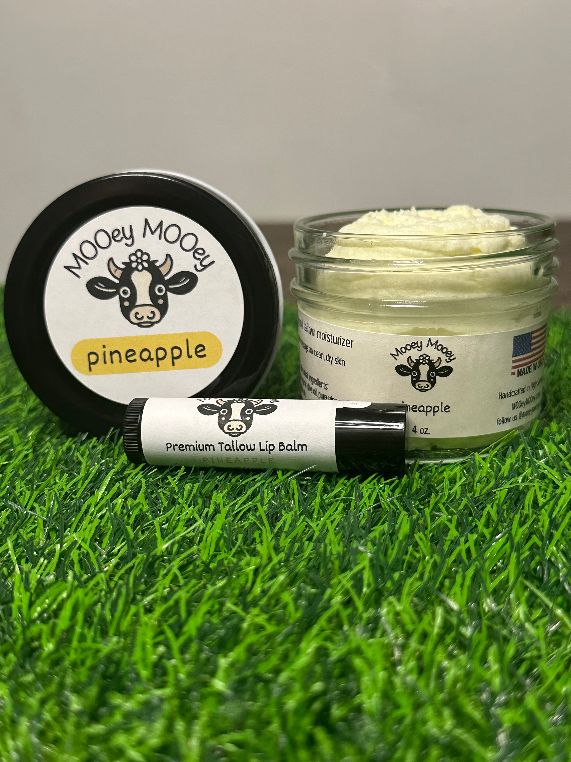 Crafted from grass-fed beef tallow, organic olive oil, and natural pineapple fragrance, this bundle is your go-to for head-to-toe hydration—without harsh chemicals or fillers.