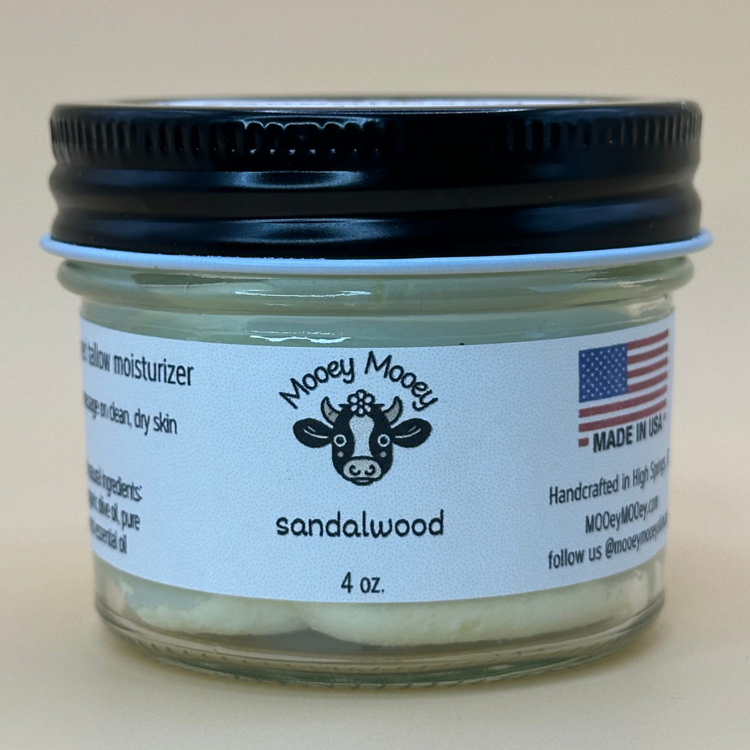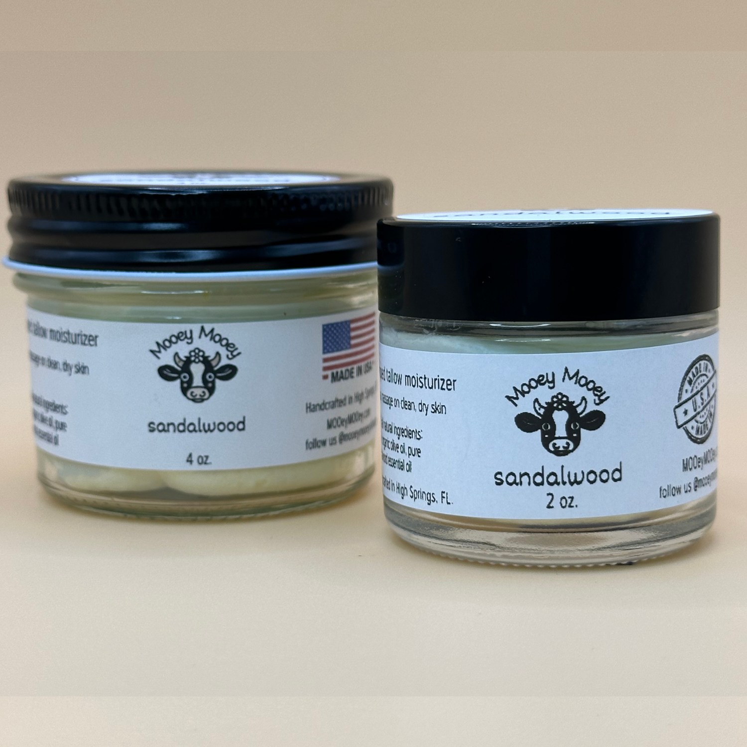 Ingredients: Premium beef tallow, olive oil, sandalwood essential oil